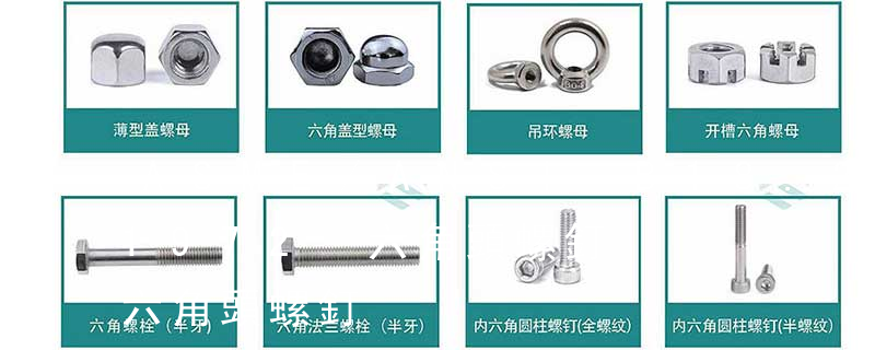 六角頭螺釘Hex cap screw與大六角螺栓Hex bolt 顧名思義為頭部為六角型的外螺紋扣件,設計為使用扳手轉動。 依照ASME B18.2.1標準,六角頭螺釘(Hex cap screw)較一般的大六角螺栓(Hex bolt)的頭高和桿長公差小,因此AS 不銹鋼外六角螺絲大部分均為全牙同六角頭全牙螺栓標準:DIN933,GB5783,ISO4017,ANSIB18.2.1,JISB1180;非全牙螺栓標準DIN931,GB5782,ISO4014,ANSIB18.2.1,JISB1180。外六角螺栓標準有一個標準是級別標準,級別標準分為