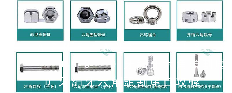 1、Flat:平頭 (鎖入后,頂部與工作件齊平)2、Oval:色拉頭、O頭、半沉頭 3、Round:圓頭 4、Pan:圓扁頭 5、Truss:大圓扁頭 6、Hex:六角頭 A-5:Finish Code/外觀處理。公制自攻螺絲 :于品名后方直接標示 Tapp 內角60度,外角120度。二、六角螺帽 六角螺帽也叫做六角螺母,一般螺帽有很多種類,有六角螺帽,有圓螺帽,方型螺帽等。六角螺母與螺絲、螺栓,螺釘相到配合的使用,起連接緊固機件作用。其中經1型六用螺母應用最廣,C級