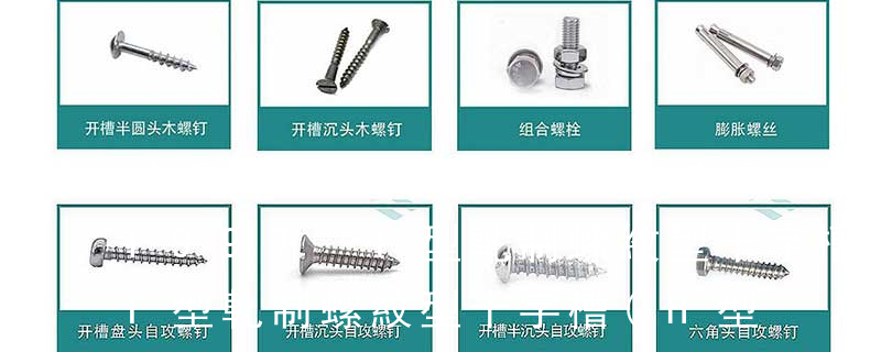1)開槽普通螺釘多用于較小零件的連接。它有盤頭螺釘、圓柱頭螺釘、半沉頭螺釘和沉頭螺釘。盤頭螺釘和圓柱頭螺釘的釘頭強度較高,瑁在普通的部件連接上;半沉頭螺釘的頭部呈弧形,安裝后它的頂端略外露,且美觀光滑,一般用 ① 螺釘直徑 ② 螺釘長度 ③ 螺釘頭型 B:球面圓柱頭; C:圓柱頭; F(K):沉頭; H:六角頭;HW:六角頭帶墊圈; O:半沉頭; P:平元頭; R:半元頭;PW:平元頭帶墊圈; T:大扁頭; V:蘑菇頭;④