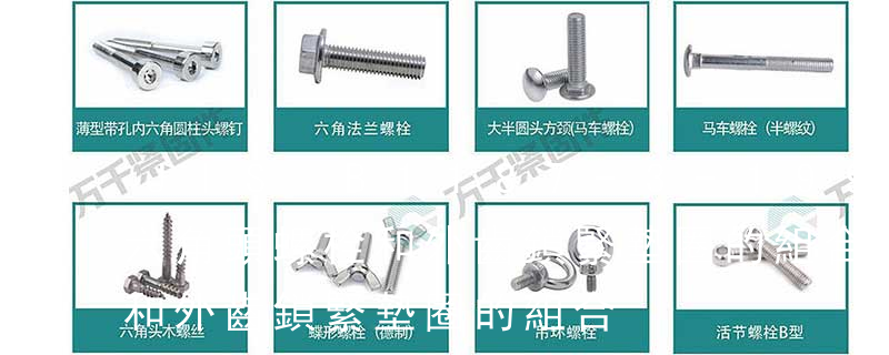 11. 組合件和連接副:組合件是指組合供應的一類緊固件,如將某種機器螺釘(或螺栓、自供螺釘)與平墊圈(或彈簧墊圈、鎖緊墊圈)組合供應;連接副指將某種專用螺栓、螺母和墊圈組合供應的一類緊固件,如鋼結構用高強度大六角頭螺栓連接副。12