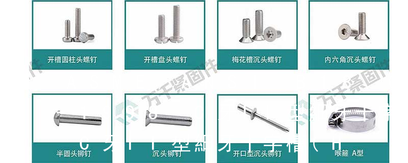1、Flat:平頭 (鎖入后,頂部與工作件齊平)2、Oval:色拉頭、O頭、半沉頭 3、Round:圓頭 4、Pan:圓扁頭 5、Truss:大圓扁頭 6、Hex:六角頭 A-5:Finish Code/外觀處理。公制自攻螺絲 :于品名后方直接標示 Tapp 十字槽半沉頭自切自攻螺釘,六角頭自切自攻螺釘。3、自擠自攻螺釘(自攻鎖緊螺釘)自擠自攻螺釘的螺紋一般為機螺紋,很少采用自攻螺紋。在扳擰方式中,為確保高速自動裝配扳手的使用,一般不推薦采用開槽。自擠自攻螺釘的螺桿