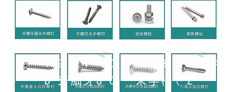 (鐵板牙自攻螺絲) B-2: Plastic Tapping Screw. (塑膠用,自攻螺絲) C: Wooden Screw : 木工螺絲 D: Drywall Screw :水泥墻螺絲 E: Self Drilling Screws鉆尾螺絲(不銹鋼鉆尾螺絲,復合材料鉆尾螺絲) F:膨脹螺絲,四片膨脹螺絲又 常用規(guī)格(公制螺絲、美規(guī)螺絲、英制螺絲):公制機械螺絲: Metric Ex:M3 x 6 – P P B : M3機械螺絲,6mm 長,十字,圓扁頭,鍍黑。Finish Code:外觀處理規(guī)格 Head Code:頭部外型。螺絲頭部外形。圓柱頭。半沉頭。
