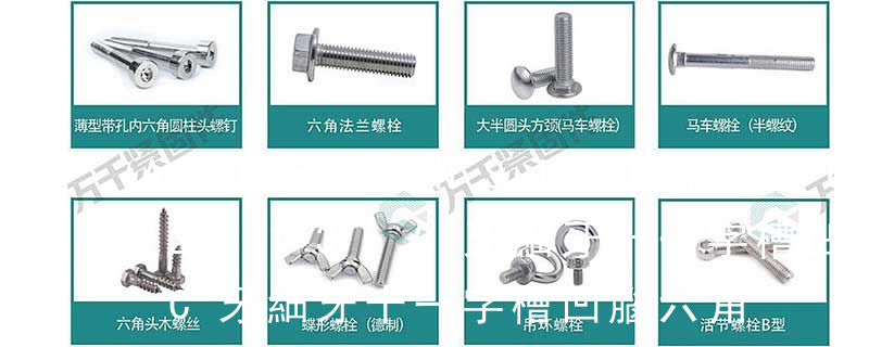 1、頭部形狀頭部形狀各式各樣。有圓頭(半圓頭)、扁圓頭、圓頭凸緣(帶墊)、扁圓頭凸緣(帶墊)、盤頭、盤頭凸緣(帶墊)、沉頭、半沉頭、圓柱頭、球面圓柱頭、喇叭頭、六角頭、六角法蘭頭、六角凸緣(帶墊)頭等。2